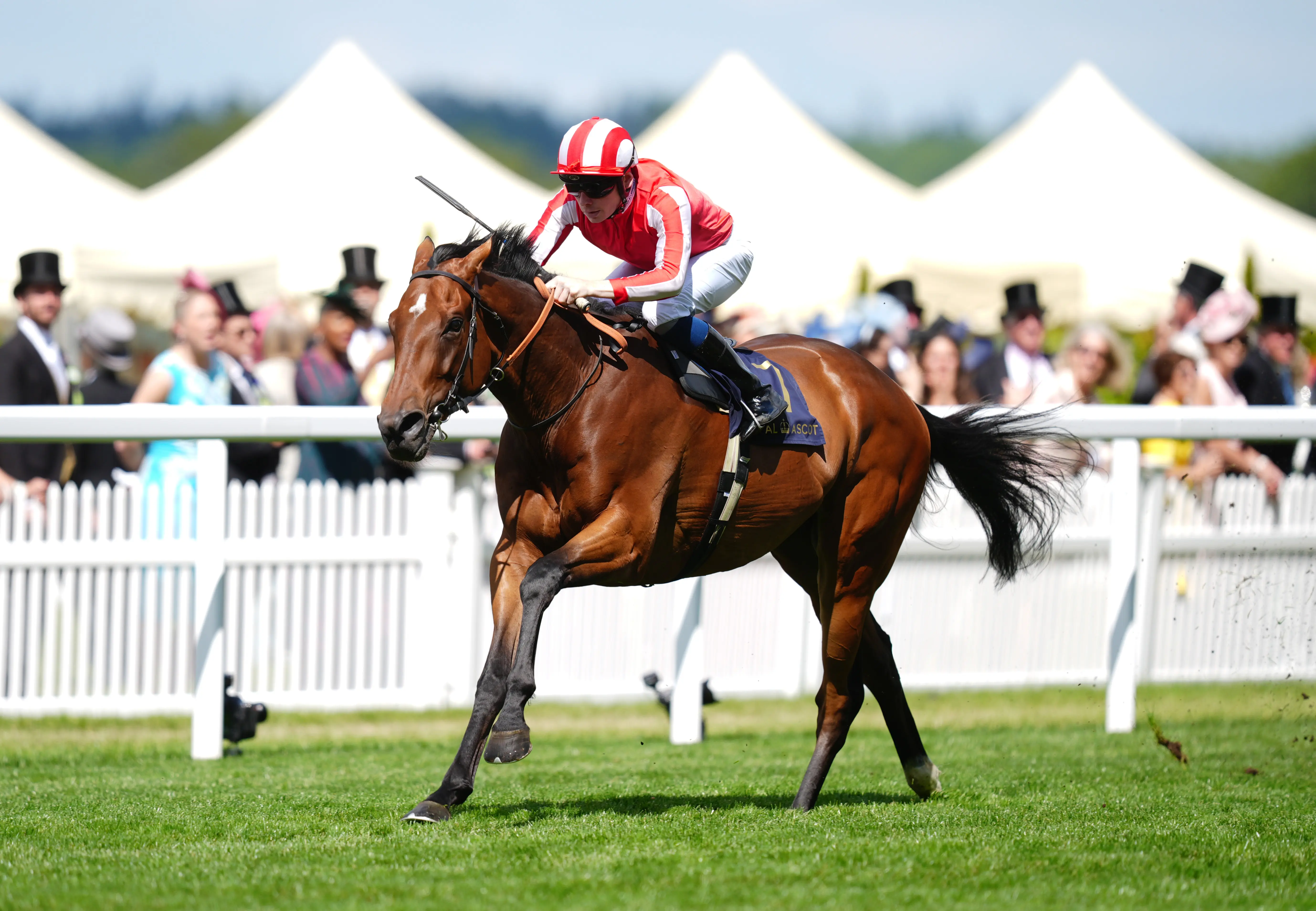Callum Shepherd celebrates with Isle Of Jura at Royal Ascot (John Walton/PA)