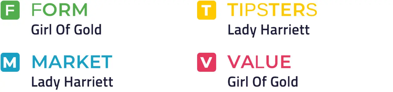 LADY HARRIETT was well backed on her reappearance last month and could be worth another chance to show that money wasn't misplaced. Isabel de Clare and Girl of Gold are entitled to be in the mix if seeing out the longer trip.