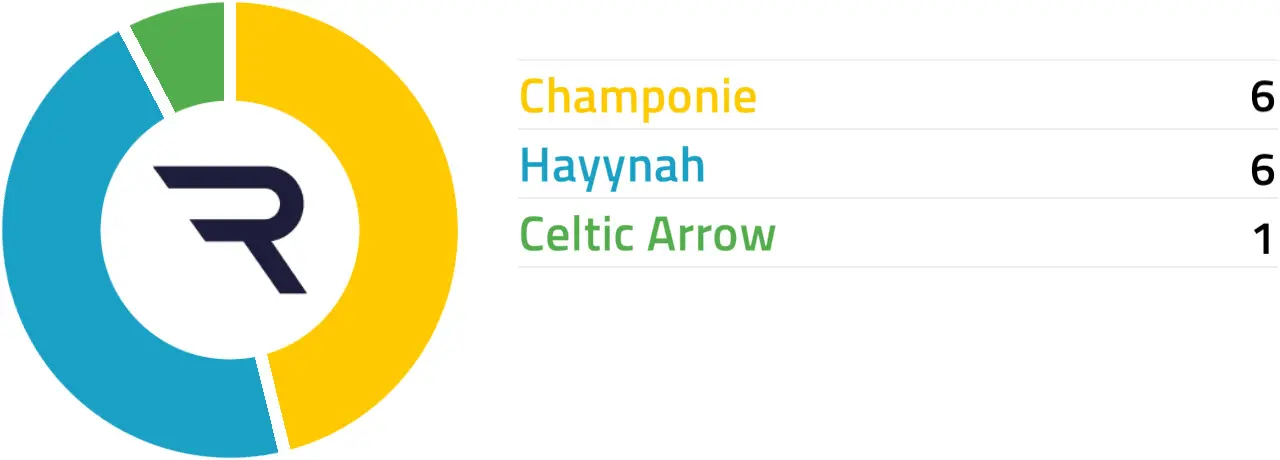 CHAMPONIE is a well-bred debutante who cost 70,000gns and represents a yard with a decent record with newcomers. Hayynah has placed three times from four starts and adds first-time cheekpieces after a 169-day absence. Celtic Arrow is lightly raced and could improve with experience.