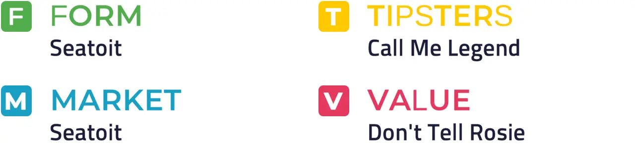 Specific Pace Hint: This could develop into a sprint for home, and Call Me Legend could be well placed to capitalise: Of the better-fancied horses, Don't Tell Rosie is most likely to be ridden furthest from the pace.