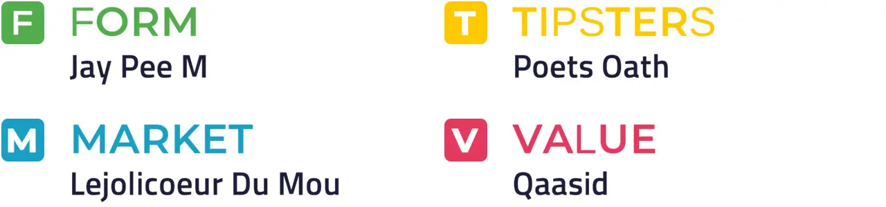 Preference is for ORLANDO SPIRIT, who was out of the weights when runner-up on handicap bow at Thurles last month and is likely capable of better yet. Poets Oath, Jay Pee M and Wild Wild Wind complete the shortlist.