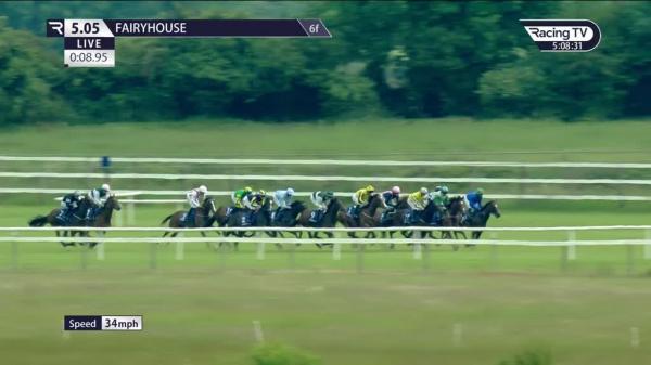 Tracked leaders, short of room on inner, hit rail and hampered rivals after 2f, rider briefly lost iron, 7th under 2f out, switched left over 1f out, ridden and no impression in 5th 1f out, kept on one pace