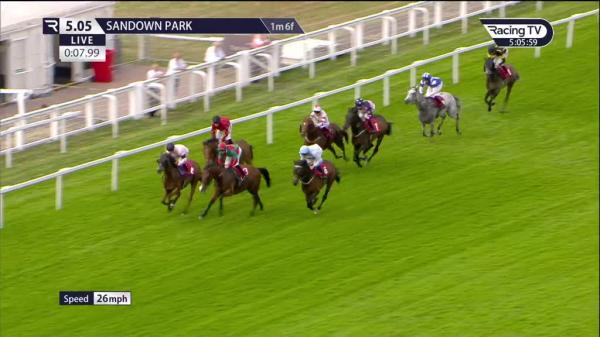 Off the pace in last trio, headway out wide chasing leaders edging right 2f out, went 2nd inside final 2f, soon hung badly right, stayed on to lead final 110 yards