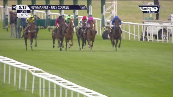 Prominent on near-side, chased leaders 2f out, ridden when went second inside final furlong, ran on well final 110 yards but no match with winner near finish