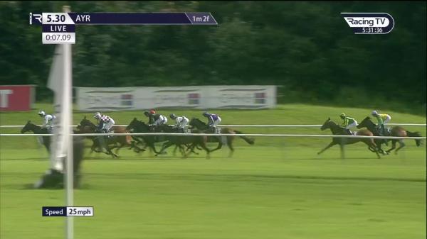 Tracked leaders, challenged near side rail and hung left over 1f out, ridden to lead approaching final furlong, hung badly left inside final furlong, all out