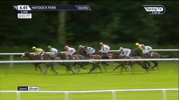 Held up in rear, waiting for room over 2f out when switched left around rivals, ridden and good headway when in clear over 1f out, kept on strongly to lead inside final furlong