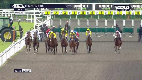 Steadied and switched right start, held up off the pace in last trio, pushed along when ran green and hung right over 2f out, headway out wide over 1f out, stayed on strongly inside final furlong, led post