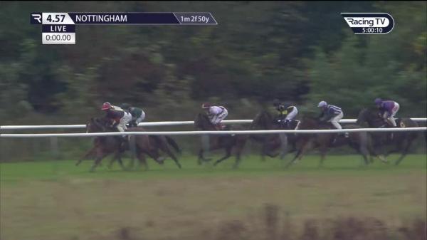 Midfield, in touch behind leaders 3f out, switched right 2f out where ridden, headway to lead entering final furlong, kept on well inside final furlong, gamely