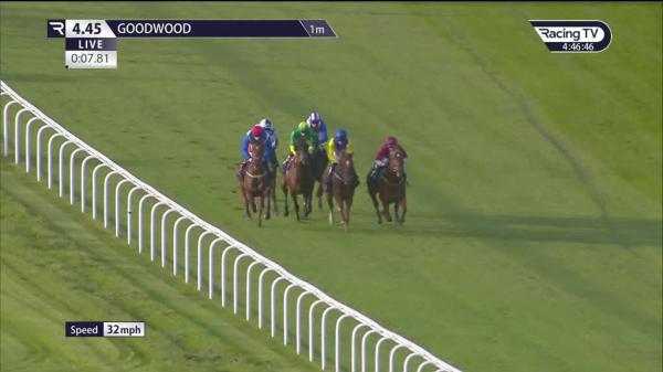 Carried right start, soon led, went clear before halfway, brought field centre in home straight, reduced lead and pushed along over 2f out, ridden and headed over 1f out, held when switched right inside final 110 yards