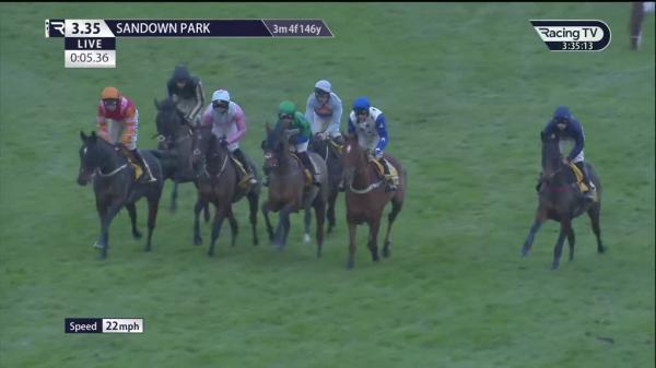 Tracked leaders, not fluent 2nd, hampered by loose horse 11th, not fluent 17th, hit 18th, kept on into 3rd approaching last where jumped left, stayed on run-in, not reach leaders