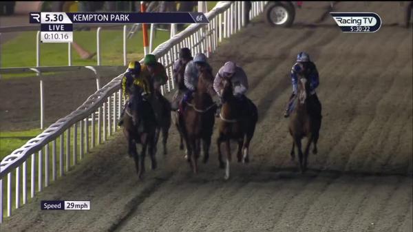 Awkward start when bumped by rival exiting stalls and in turn slightly impeded other rival, soon disputed third, headway on far side from 2f out, led approaching final furlong, ridden inside final 110 yards, well on top near finish, slightly eased final strides