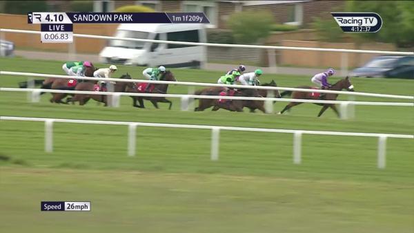 Wore hood to post, loaded riderless in stalls, held up off the pace in last quartet, headway tracking leaders over 2f out, shaken up to lead 1f out, headed and not pace of winner final 100 yards