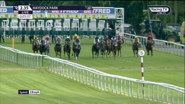 Slowly into stride, green off the pace towards rear near side rail, headway switched left and ran on inside final furlong, never going pace of leading trio