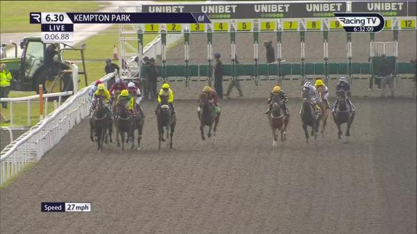 Not that well away, off the pace towards rear, good headway on inside 2f out, ridden chasing leaders over 1f out, angled out and strong run inside final furlong, quickened to lead inside final 100 yards, soon clear