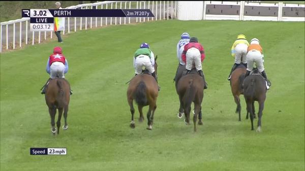 Held up in rear, headway travelling easily approaching 2 out where made mistake, soon driven along, switched right run in, soon made headway under pressure, ran on, not reach leader