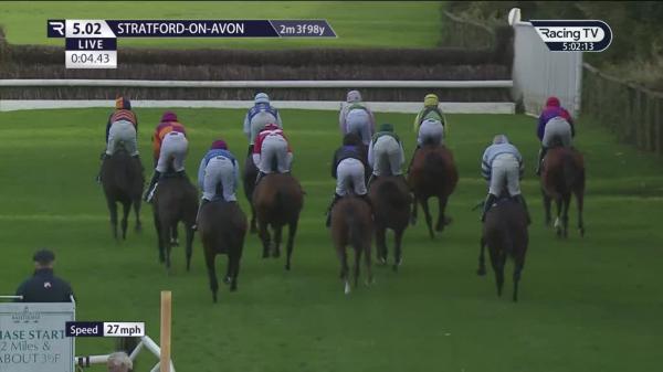Mid-division on outside, soon dropped to rear, not fluent early, mistake 3 out and pushed along, rapid headway on outside home turn, led approaching last, stayed on well flat