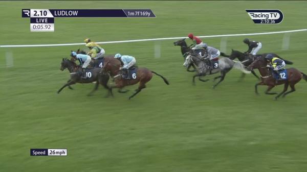 Held up in mid-division, headway chasing leaders home turn, close 3rd when badly hampered 3 out, went 2nd before the last, strong challenge run-in, led towards finish
