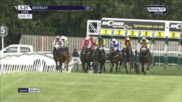 Fly jumped start, mid-division, waiting for gap from well over 1f out, pushed along and squeezed through 1f out, ridden and chased clear leader over 110 yards out, no impression
