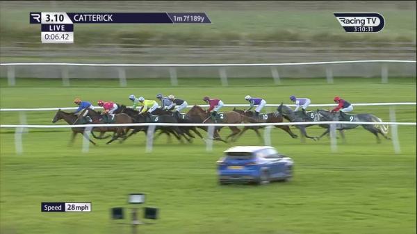 Awkward start and slowly away, in rear and pushed along early, kept wide and made headway before halfway, closed on leaders 5f out, pushed along over 2f out, went third inside final furlong, ran on well, took second towards finish