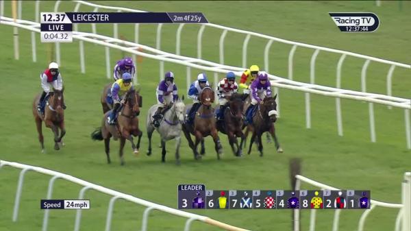 Prominent, soon raced in third, chased leader, disputing when bumped rival 4 out, not fluent 3 out, outpaced and jumped right last, weakened towards finish