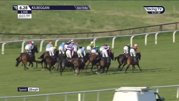 Chased leader, led after 1st, pushed along after 2 out, joined entering straight, no extra in 2nd when badly hampered last, dropped to 3rd over 50 yards out